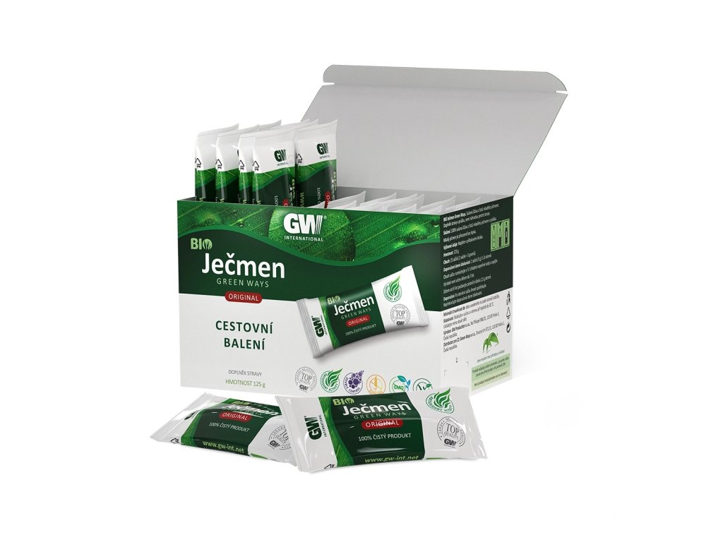 Zelená superpotravina v praktickém balení. BIO Ječmen na cesty Green Ways podporuje regeneraci a dodává organismu důležité výživné látky. Je šetrným pomocníkem pro detoxikaci a restart organismu.