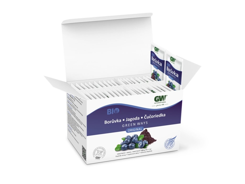 Dopřejte svému tělu celou nálož vitamínů, minerálů a antixodantů pomocí osvěžujícího nápoje z Borůvek Green Ways. 100% odšťavněná a následně šetrně vysušená šťáva z brusnice borůvky (Vaccinium myrtillus) je přírodním zdrojem významných biologicky aktivních látek, které přispívají k podpoře imunity, vitality a celkového zdraví. BIO sušený prášek z plodů BORŮVKY obsahuje díky ekologickému pěstování výrazně vyšší obsah cenných antokyanů, než je tomu běžné u průmyslově pěstovaných šlechtěných odrůd. Záměrně jsme proto ponechali jako součást produktu také slupky borůvek, které jsou významným zdrojem antokyanů.
